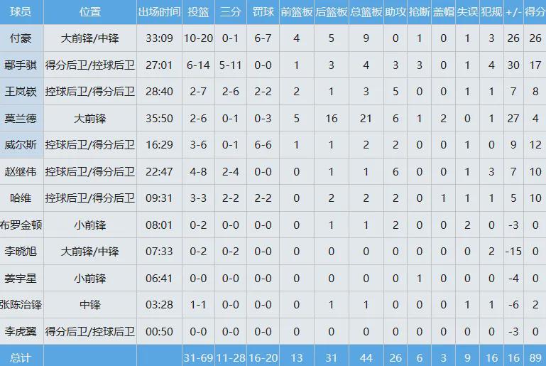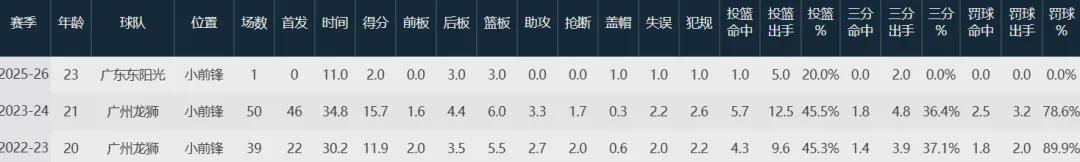 广东队数据如下: